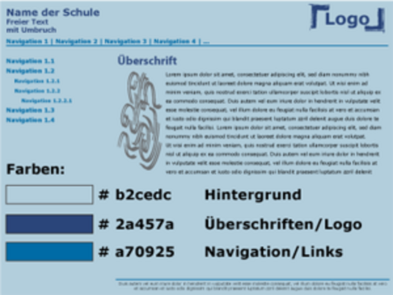 Je nach Vorlage haben Sie die Möglichkeit verschiedene Optionen zu setzen. In dem meisten Vorlagen sind das der Schulname, ein Logo und ein Motto.