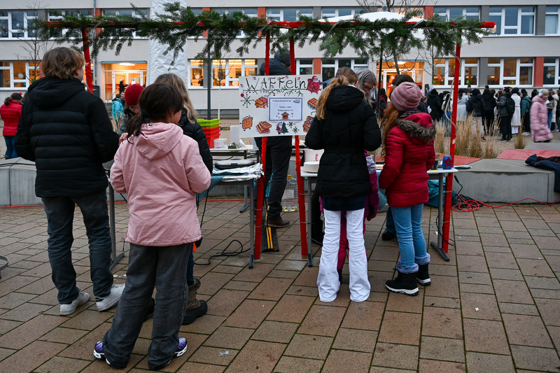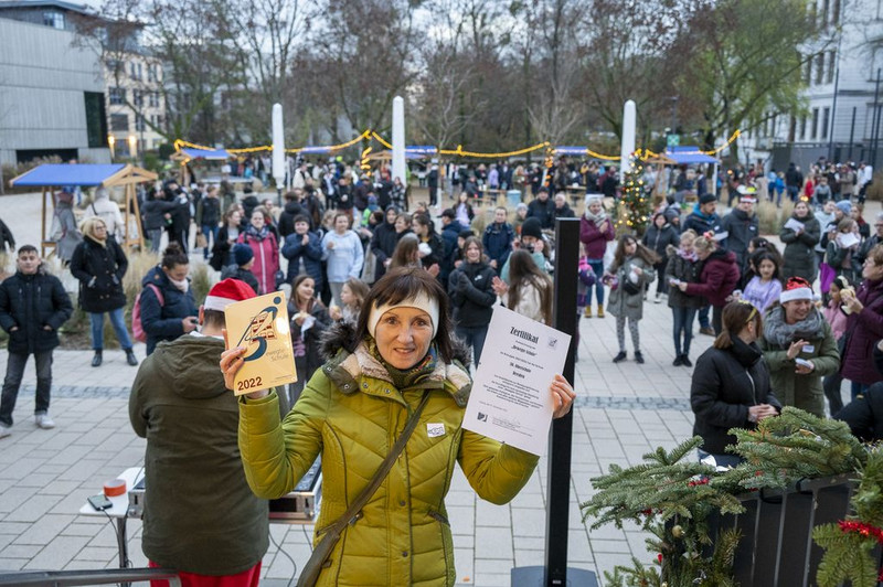 In unserer kleinen ukrainischen Schule (Außenstelle Seitenstraße in der Neustadt) wurde am letzten Schultag des Jahres 2022 eine kleine Weihnachtsfeier veranstaltet. Dazu war die Schulleitung eingeladen und Schulleiterin Frau Riemer erhielt feierlich ein extra für unsere Schule angefertigtes Bild als Geschenk. Angefertigt hat dieses die Schulassistentin Frau Svitlana Okolita.