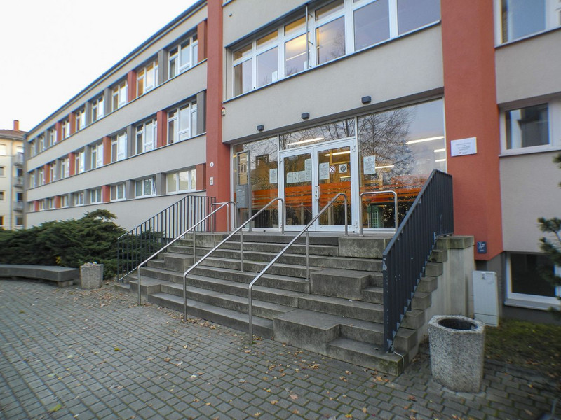 Hereinspaziert zum Haupteingang. Der Unterricht beginnt um 08:00 Uhr.