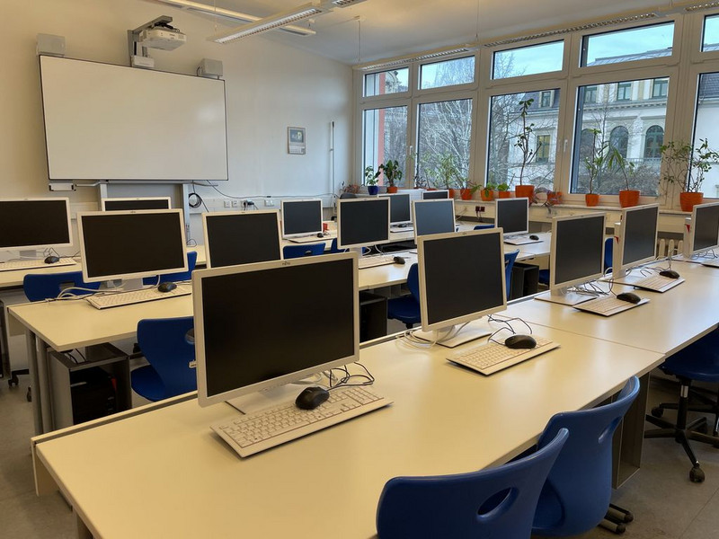 "Großes" Computerkabinett für TC und Informatik. Unsere Schüler/innen wurden intensiv im Umgang mit LernSax geschult und können die häusliche Lernzeit gut mit Klassen-Online-Konferenzen und ihren Lernplänen gestalten.