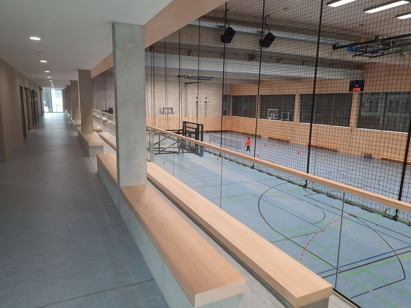 Von der Empore der neuen Turnhalle aus, lassen sich die sportlichen Wettstreite der Klassen zu unseren Schulfesten verfolgen.