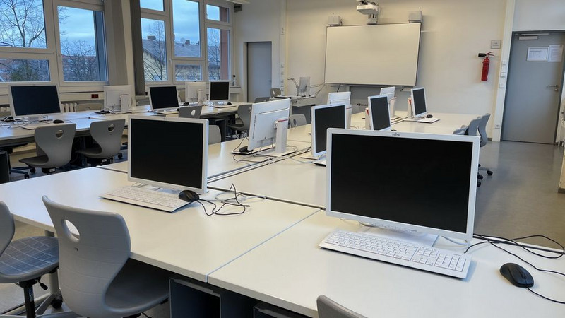"Kleines" Computerkabinett für TC und Informatik. Dieser Fachunterricht wird in Gruppen mit halber Klassenstärke unterrichtet.